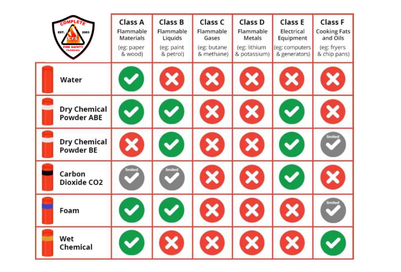 Not only do we provide quality equipment, our friendly staff can also arrange for regular servicing for your fire safety equipment to ensure it is always ready and in good working order which means you can be sure it will work when needed. Below you will see the six broad classes of fires for which our equipment is recommended.